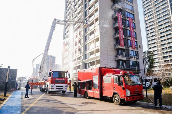 为进一步提升高层建筑火灾防范与应急处置能力,近日杭州市钱塘区高层建筑火灾应急演练活动在沁贤里柚米社区举行。此次演练旨在通过实战化、场景化,全面检验应急预案、联动机制和救援能力。